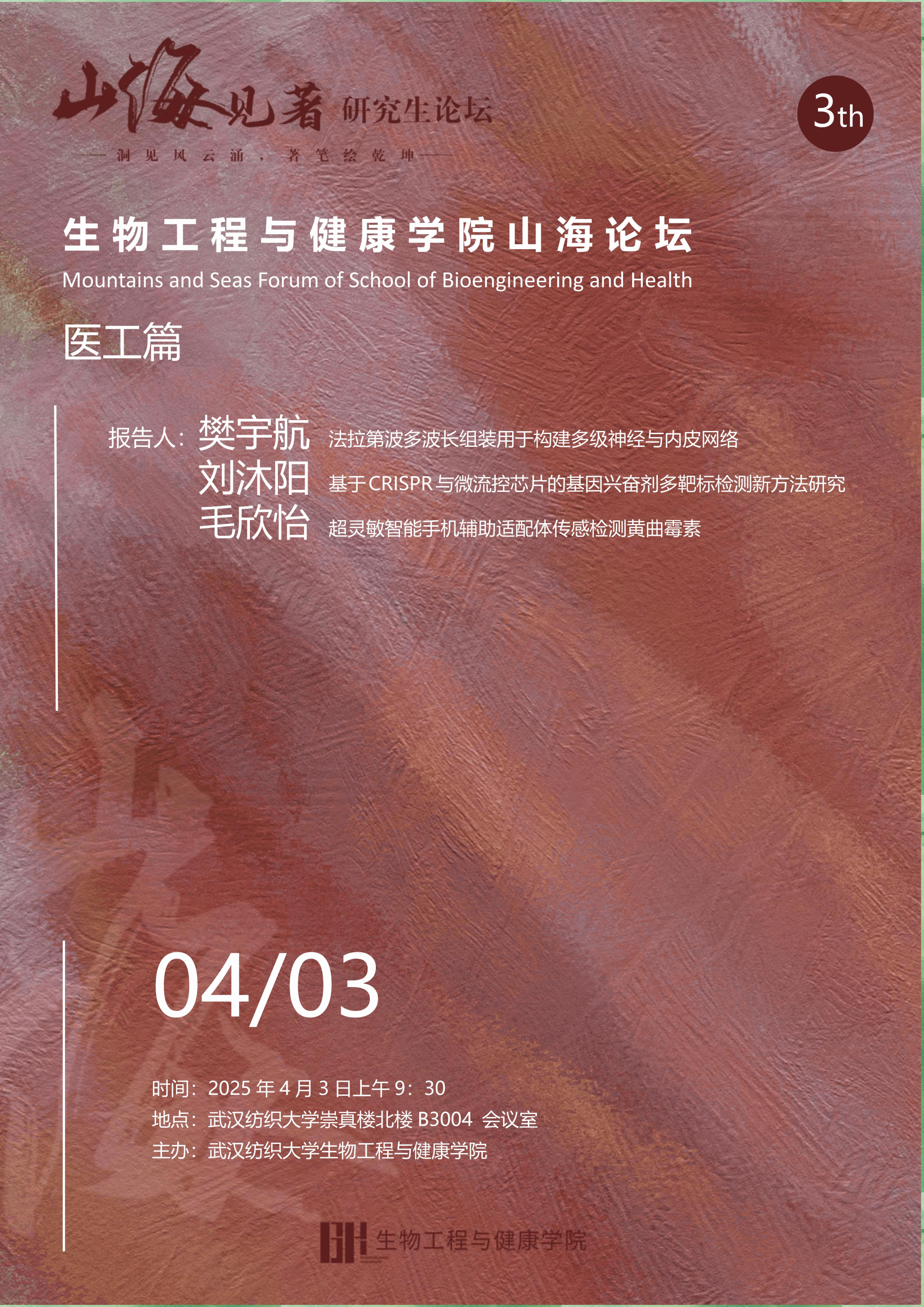 4月3日上午,williamhill英国中文主办的“山海论坛”在学校崇真楼北楼B3004会议室顺利召开。本次论坛聚焦医工交叉领域前沿,樊宇航、刘沐阳、毛欣怡三位研究生及本科生带来了他们的科研成果分享。