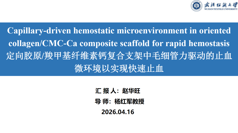 博士生赵华旺在杨红军教授的全方位指导下,凭借“多功能创面修复止血材料”相关研究项目荣获二等奖。该研究紧密对接临床创伤急救的实际需求,精准瞄准现有医用止血材料“止血时效短、创面愈合能力弱”的行业痛点,创新设计并构筑了具备定向流体调控功能的复合医用支架,成功破解了传统材料凝血效率不足、创面修复效果不佳的应用瓶颈。实验数据充分验证,该材料可快速实现创面止血,有效调控创面微环境,同时能够引导细胞有序增殖生长,助力受损创面高效修复,在急性创伤救治、外科手术等领域具有广阔的应用前景。从研究体系方案设计、材料制备与改性,到体内外生物学评价、实验数据综合分析,再到论坛汇报内容的梳理与优化,杨红军教授均给予细致入微的指导,推动研究实现了从单一止血功能向“止血-促愈”多功能一体化的性能升级,为项目成功获奖筑牢了坚实基础。