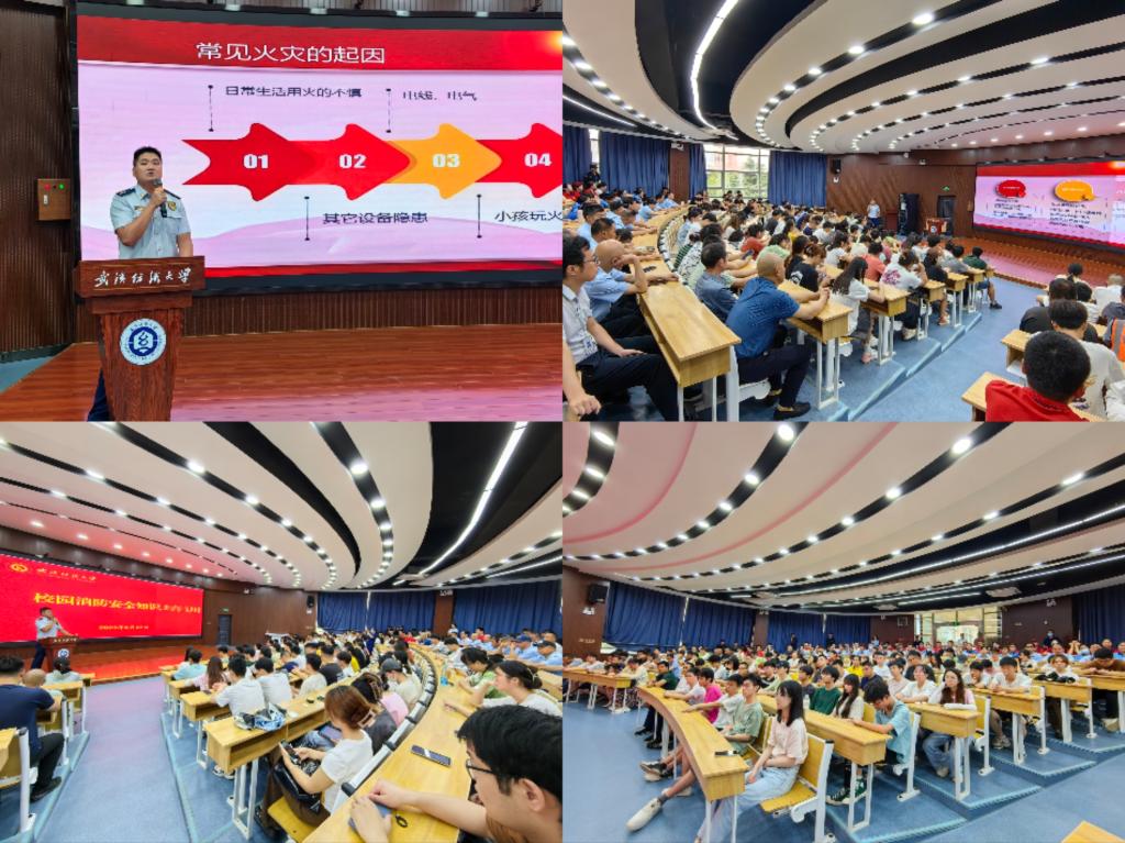 念好安全经,绷紧安全弦。28日下午,保卫处专门邀请了江夏消防救援大队黄平权队长进校园,现场为200余名暑期留校学生、后勤保障以及基建施工人员带来了一场实用性强、干货满满的暑期安全教育讲座,通过剖析近期案例和典型事故,以提高广大师生的自我防范意识和自我保护能力,特别是在面对用火、用电时发生突发事件如何采取应对和逃生自救措施。