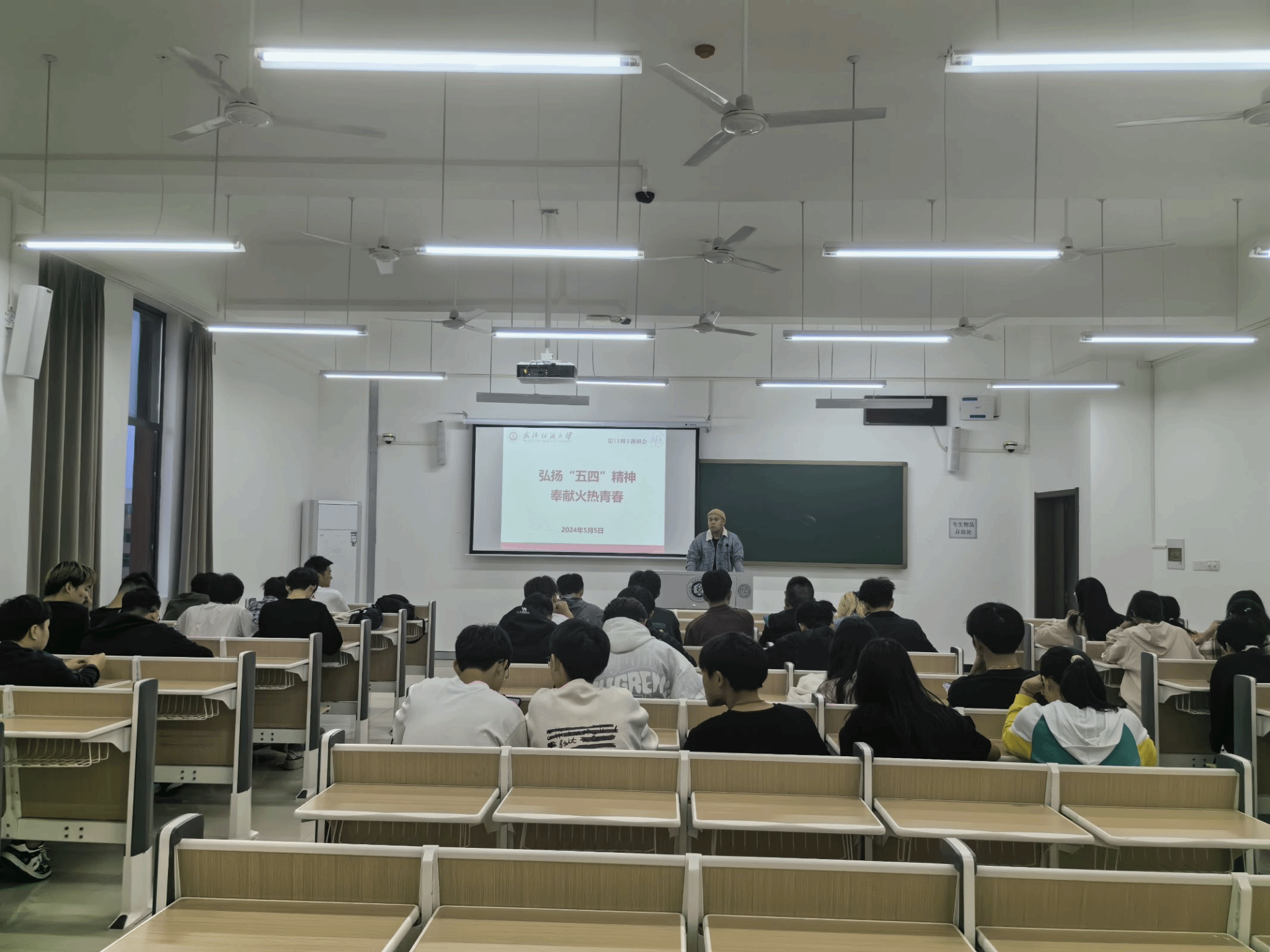 首先召开的是以“弘扬‘五四’精神,奉献火热青春”为主题的班会。会上,朱一雷为同学们介绍了有关五四青年节以及“五四”精神的知识,强调了作为当代青年,应积极弘扬“五四精神”,培养家国情怀,以无限的青春活力谱写激昂华章。
