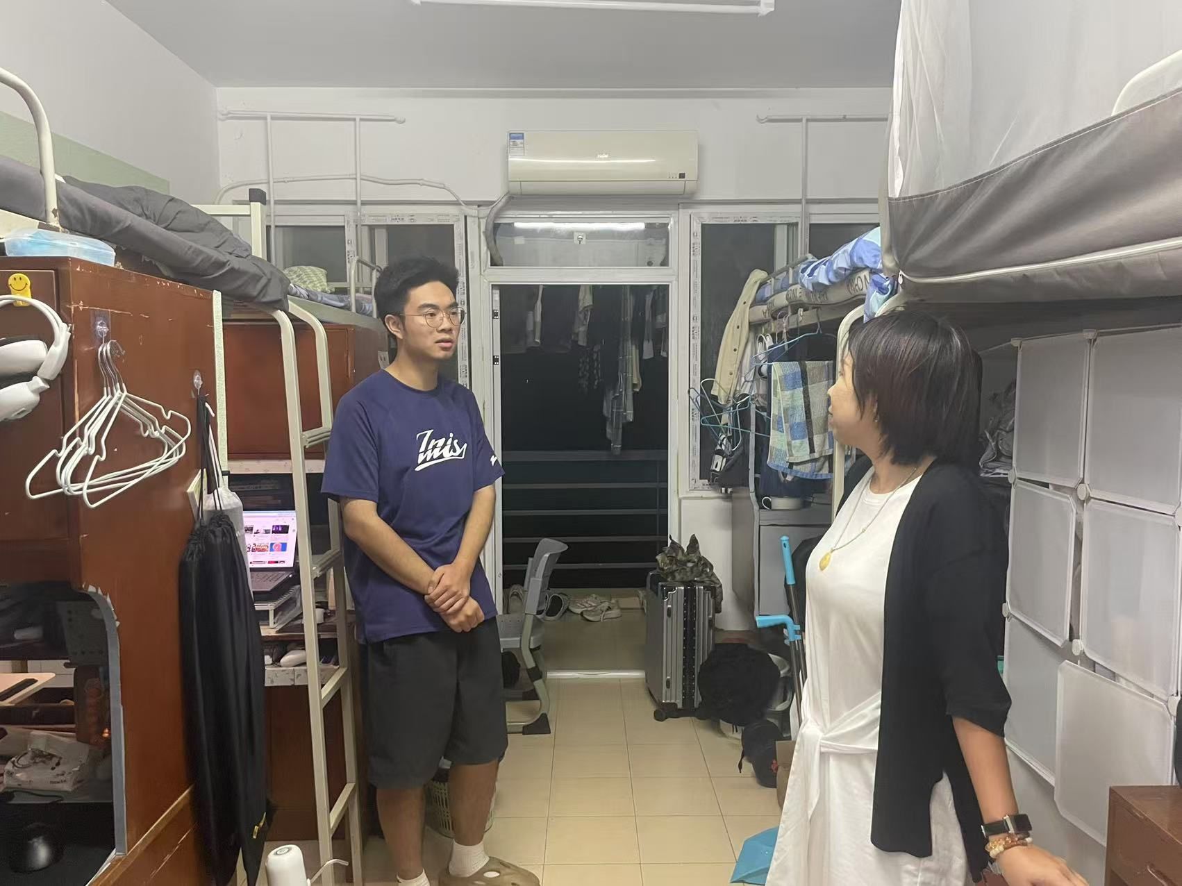 迎新现场热闹非凡,老师与志愿者用温暖的笑容和贴心的服务,让新生们感受到了学院的关怀与热情。他们耐心细致地为新生办理入学手续,认真核对每一项信息,确保每一位新生都能顺利报到。为及时了解新生需求,帮助他们更好更快地融入新环境,学院书记李楠、副书记刘奕前往新生学生宿舍进行走访慰问。实地查看学生宿舍基础设施完备情况,亲切询问学生:“是从哪里来的呀,感觉校园环境怎么样呀,对专业还有什么疑惑呀,是否还有需要帮助的地方的呀”,并鼓励同学们在大学期间做到德、智、体、美、劳全面发展,积极参与校院活动,享受丰富多彩的大学生活。在整个迎新过程中,老师们用自己的行动诠释着师者的责任与担当,让新生们感受到了家的温暖。一张张崭新的面孔,充满了对未来的憧憬和期待。生康学院将以饱满的热情和专业的教育,助力新生们在新的人生阶段绽放光彩。