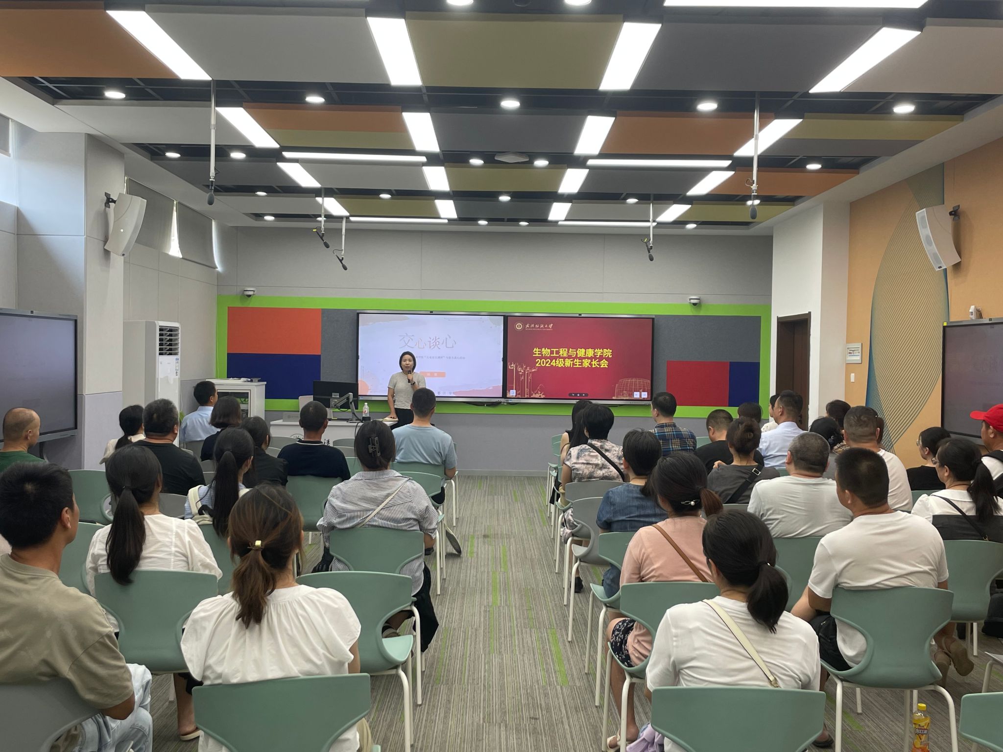 为了让新生更好地适应大学生活,生康学院组织开展了线下班会和家长会。班会上,辅导员朱一雷详细介绍了学院的专业特色、课程设置等方面的情况,让新生们对自己的大学生活有了更清晰的认识。同时,朱老师还强调了大学生活中的纪律要求和注意事项,引导新生们树立正确的学习态度和生活观念。家长会上,学院领导老师们与家长们进行了深入的交流,介绍了学院的教育理念和培养目标,解答了家长们的各种疑问。通过线下班会和家长会,学院、家长和学生三方建立了良好的沟通渠道,为新生的成长和发展奠定了坚实的基础。
