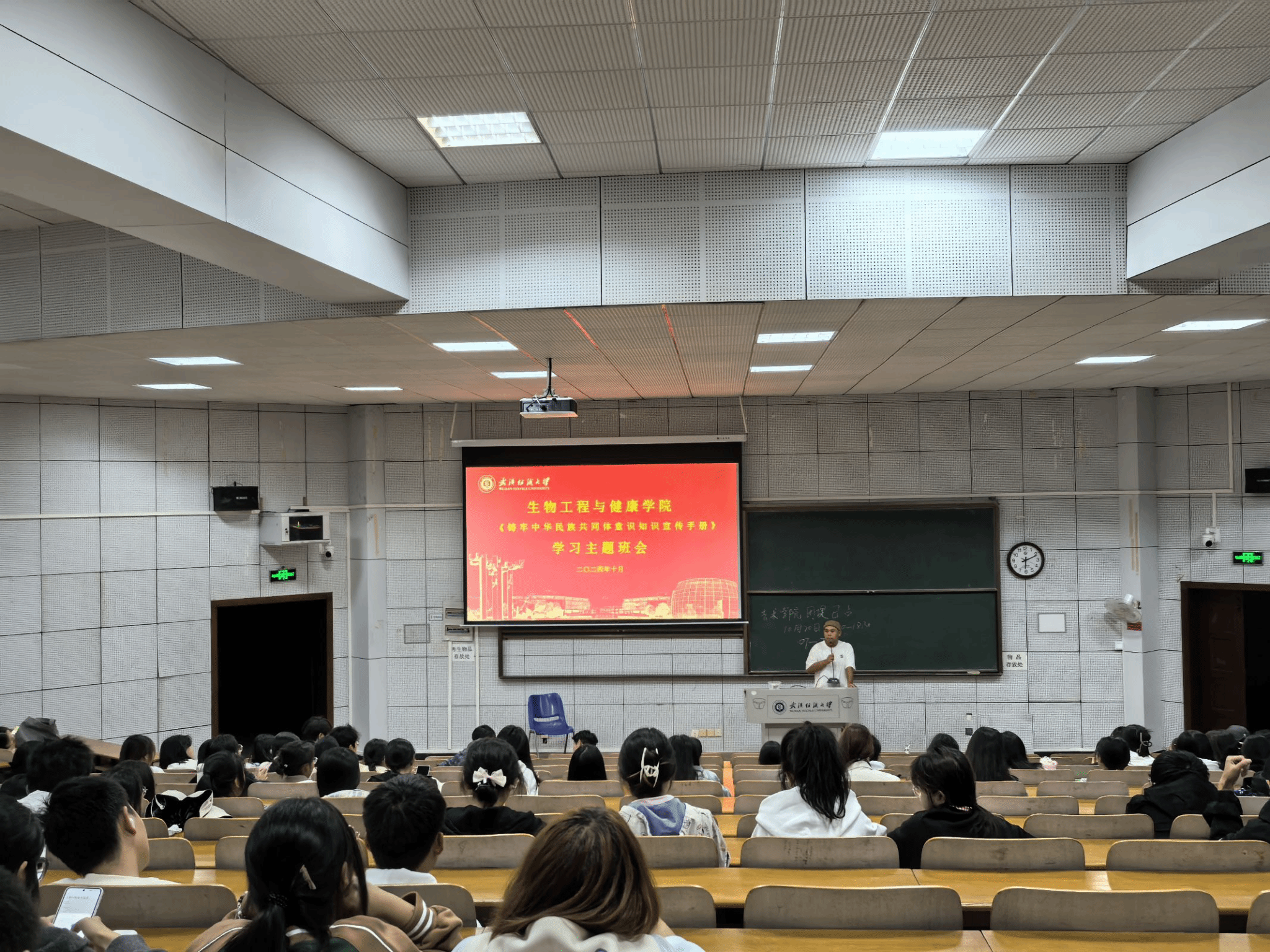 “中华民族一家亲,同心共筑中华梦”。辅导员朱一雷通过带领同学们学习宣传手册的形式,将相关知识传递给在场的每一位同学,旨在加深学生们对中华民族共同体意识的理解与认同。朱一雷引用习近平总书记“我们要像石榴籽一样,紧紧地抱在一起”的金句,强调了中华民族共同体意识在维系国家统一促进民族团结方面的重要作用,他还结合实例,生动阐述了如何在日常生活中践行这一理念,引导同学们自觉成为中华民族共同体意识的传播者和实践者。