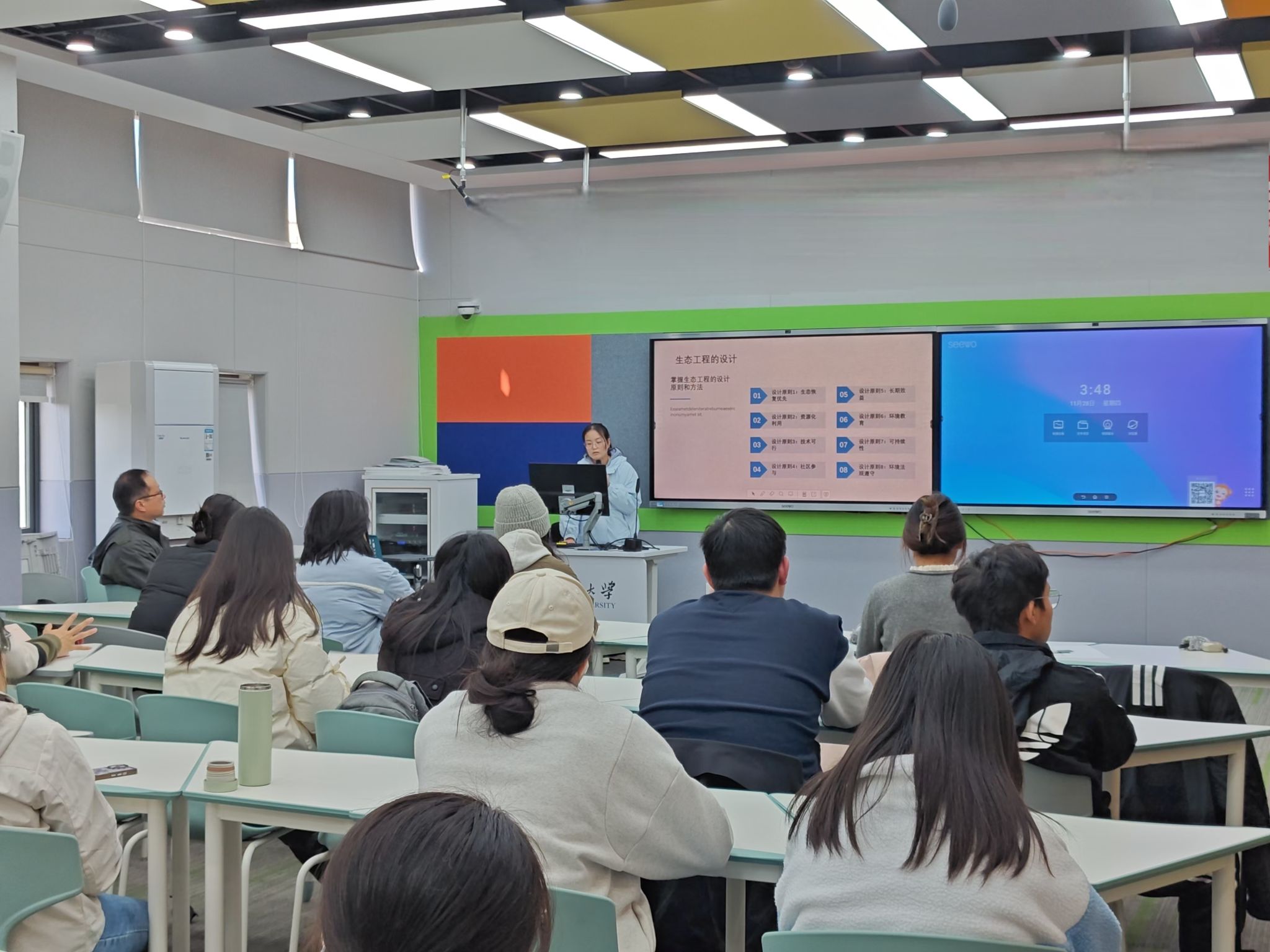 在学生汇报结束后,周建刚教授以其深厚的学术背景和丰富的研究经验,为师生们带来了一场主题为“环境生物学:从理论到实践”的专题讲座。他深入浅出地讲解了环境生物学的基本概念、研究方法以及在当前环境问题中的应用。周教授强调了生物工程在解决环境问题中的重要作用,并鼓励学生们积极参与到环境生物学的研究中来。