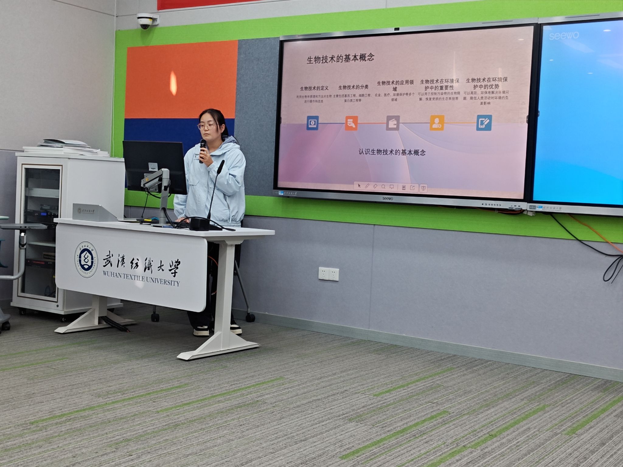 活动伊始,毛欣仪同学和胡欣彤同学分别就生物学的未来发展分享了他们的见解。毛欣仪同学深入探讨了生物学在解决全球性问题中的潜力,特别是生物技术在环境保护和可持续发展中的关键作用。胡欣彤同学则从生物学的创新趋势出发,展望了未来生物学可能带来的变革性影响。两位同学的汇报不仅展示了他们对生物学未来发展的深刻理解,也激发了在场师生的思考和讨论。