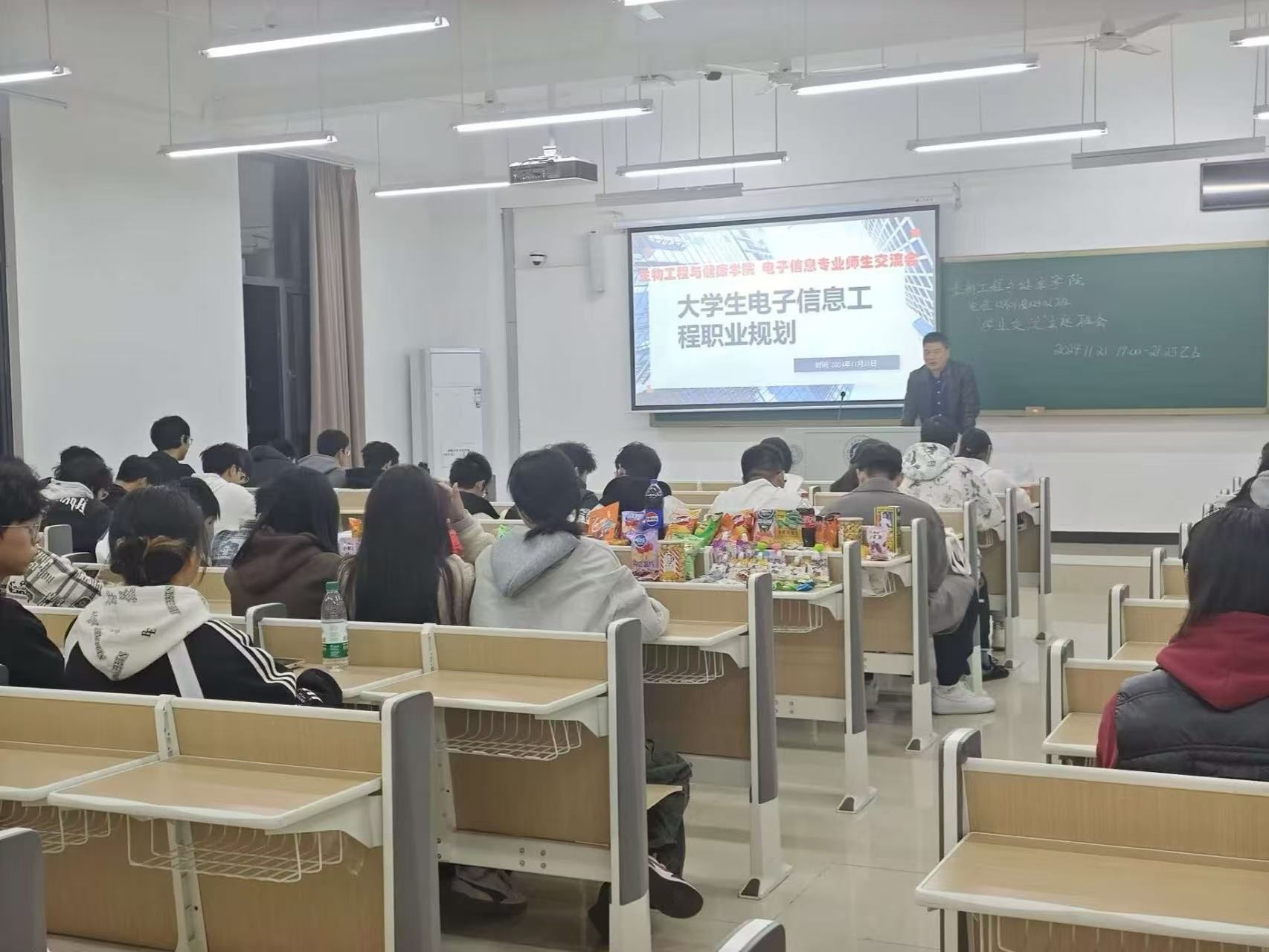 11 月 17 日,工会主席王俊杰老师率先开启职业规划篇章,依凭多年业界经历,为同学们详尽解读本专业就业趋势,举例说明各类岗位所需技能与素质,引导同学们自我评估、探寻自身长处,初步勾勒职业规划。随后的学业交流时段,王老师针对专业课程学习中的疑难,分享学习诀窍与资源运用途径,激励大家积极投身学术研讨。