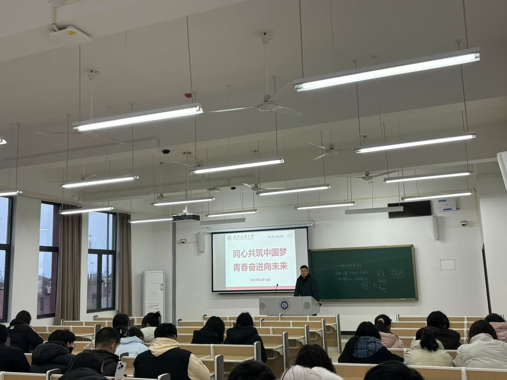 新学期伊始,2月16日晚,生康学院各年级于9号教学楼开展“同心共筑中国梦 青春奋进向未来”主题班会暨开学第一课。学院副书记、辅导员、班主任以及生康学院全体学生参与此次班会。
