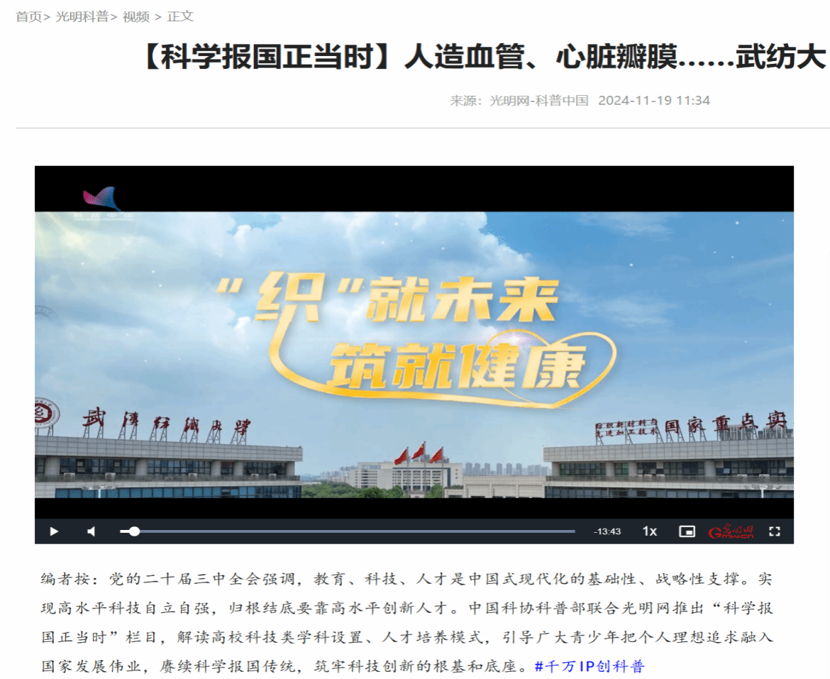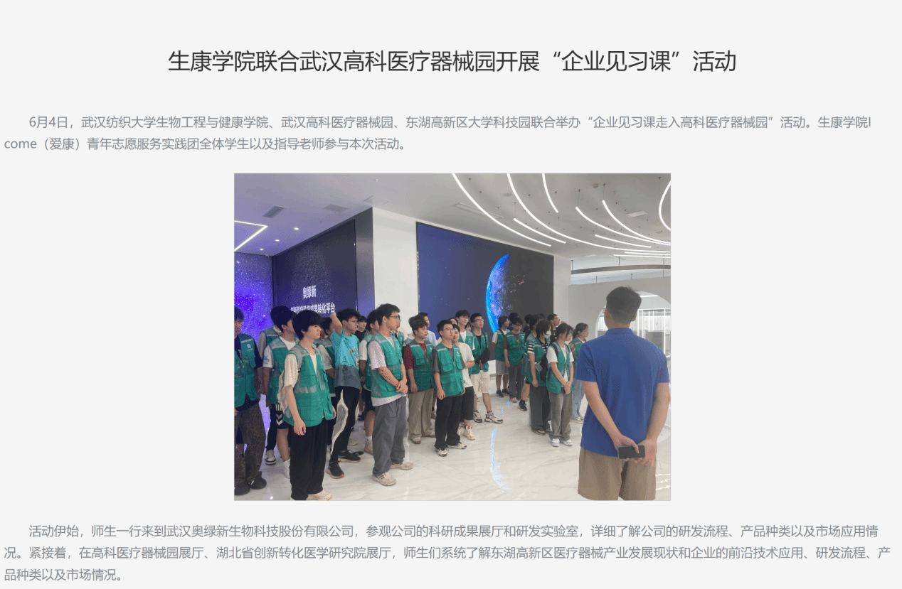 二是狠抓关键,锚定特色发展。学院秉持“四个面向”理念,将学科交叉融合作为驱动自身发展的核心引擎。在探索特色发展定位的进程中,学院开展了广泛且深入的调研工作。学院组织专业团队,多次前往武汉大学、东华大学、中南财经政法大学等高校,与相关学科的权威专家进行深度交流,学习他们在学科建设、人才培养等方面的宝贵经验。同时,团队深入中南医院、武汉大学人民医院、同济医院等行业内头部机构,深入了解行业前沿动态、实际需求以及面临的技术难题。同年10月,学院邀请来自武汉大学、华中科技大学、上海交通大学等高校的8位本领域权威专家,召开生物医学工程学科建设咨询会,编制了《武纺大“双一流”建设视域下生物医学工程学科发展建议》,建设生物医学工程和纺织科学与工程深度融合的新工科,明确指出生医工特色学科建设的总体方向,初步建立 “三三一”本硕博体系,为学校一流重点学科建设做好关键支撑。目前,学院已获批生物医学工程学术型硕士招生资格,是湖北省属高校中的唯一一家。学院医工交叉特色办学成果受到光明网《科学报国正当时》栏目专题报道。
