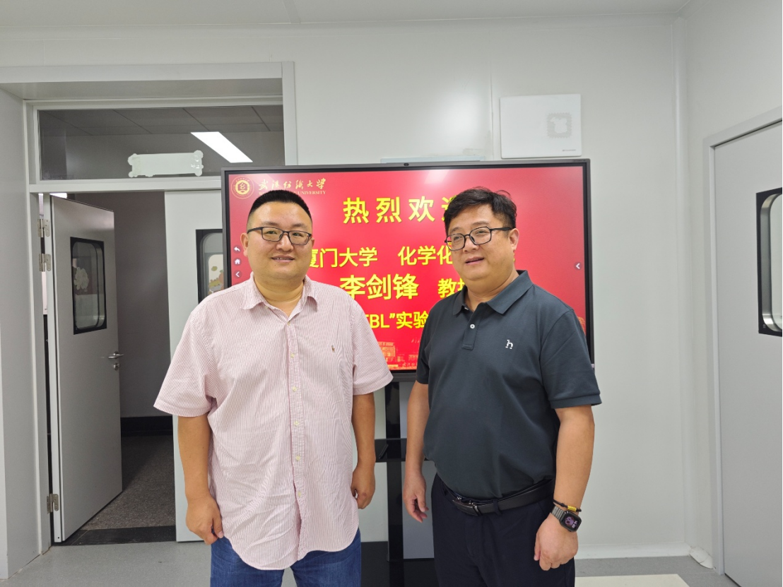 报告开始前,李教授受邀参观“MFBL”实验室,沈爱国教授向李教授来访表示热烈欢迎,向李教授热情介绍了实验室成员组成和仪器设备,并就实验室研究方向与未来发展与李教授进行了交流。